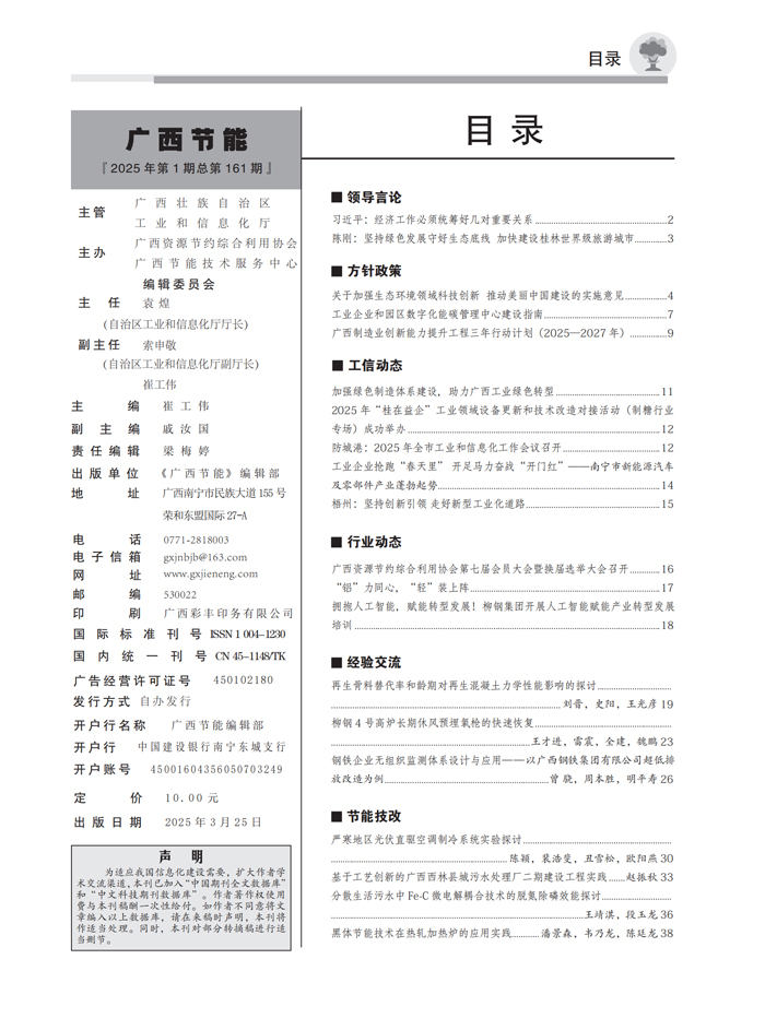 各位读者,大家好,《广西节能》2025年第2期杂志已出版,欢迎查阅。